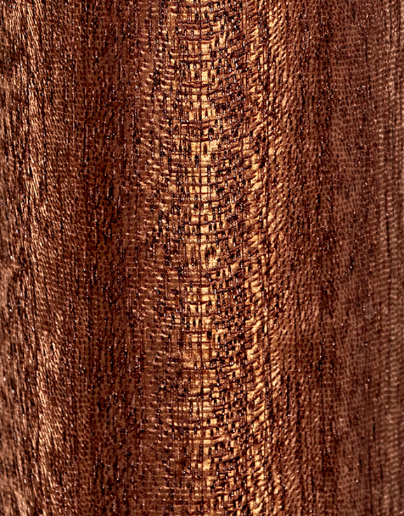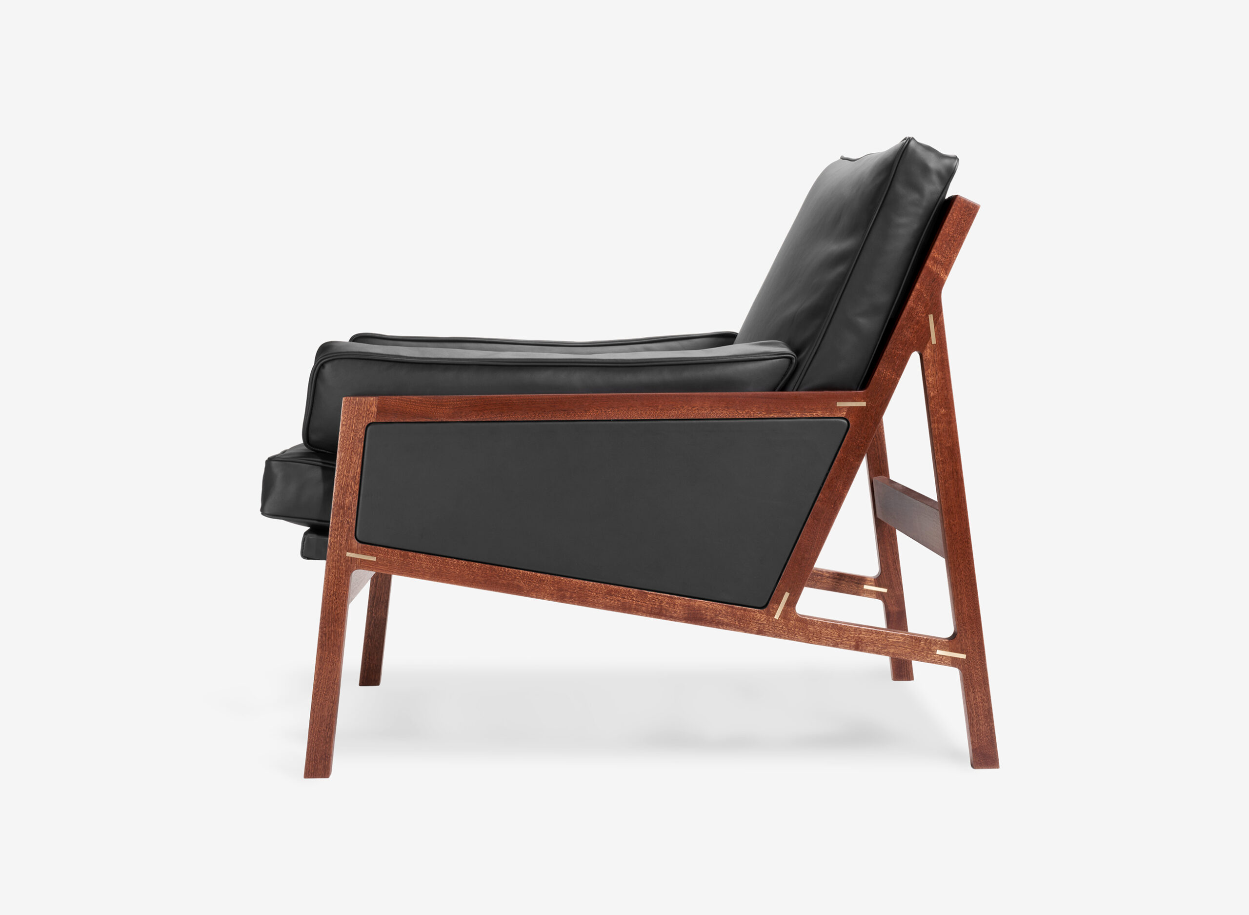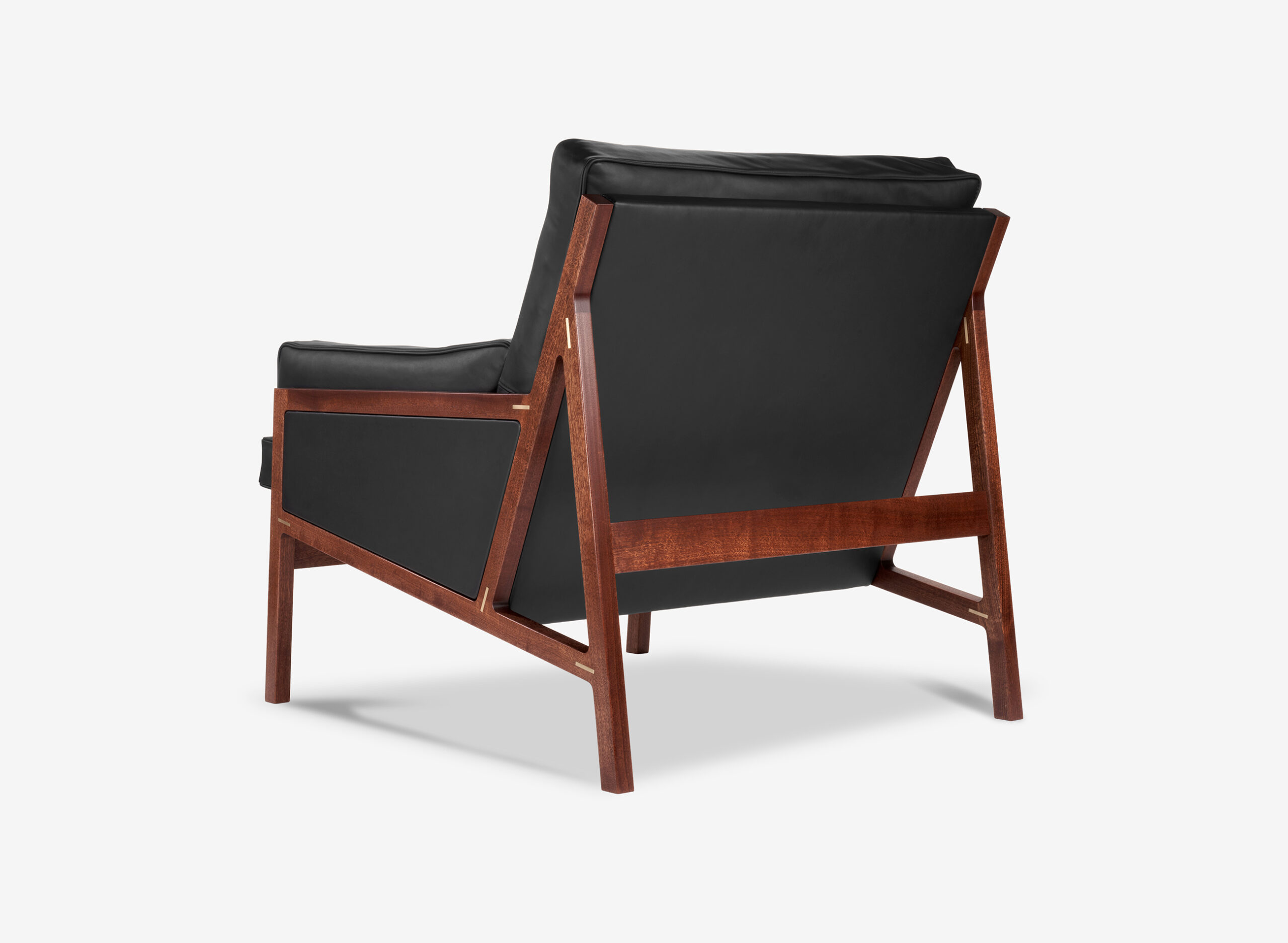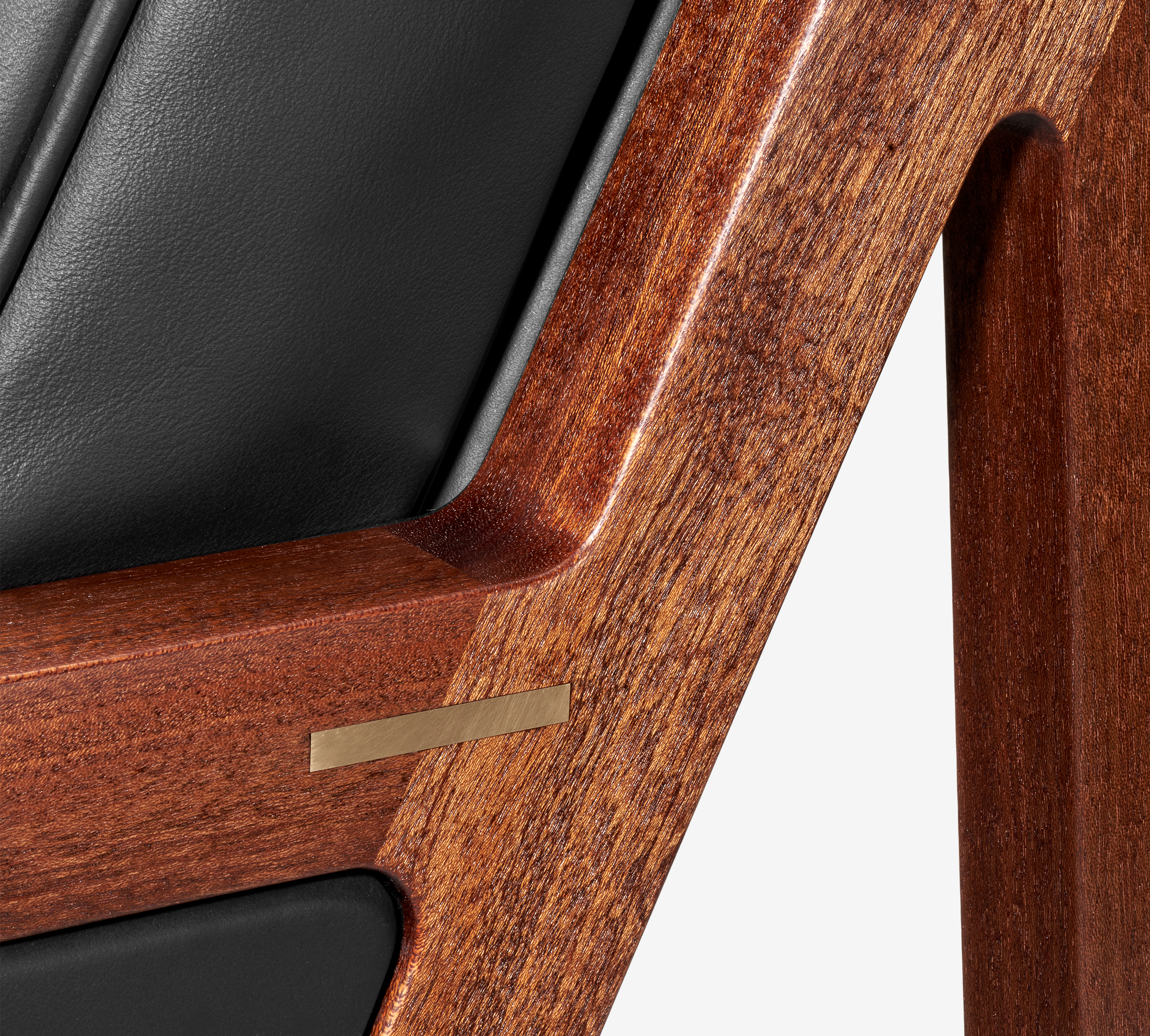 Precyzyjnie dopasowane połączenia tworzą płynne przejścia między elementami. Każde z nich ozdobione zostało mosiężną wstawką – subtelnym detalem kontrastującym z głębokim kolorem drewna sapeli.