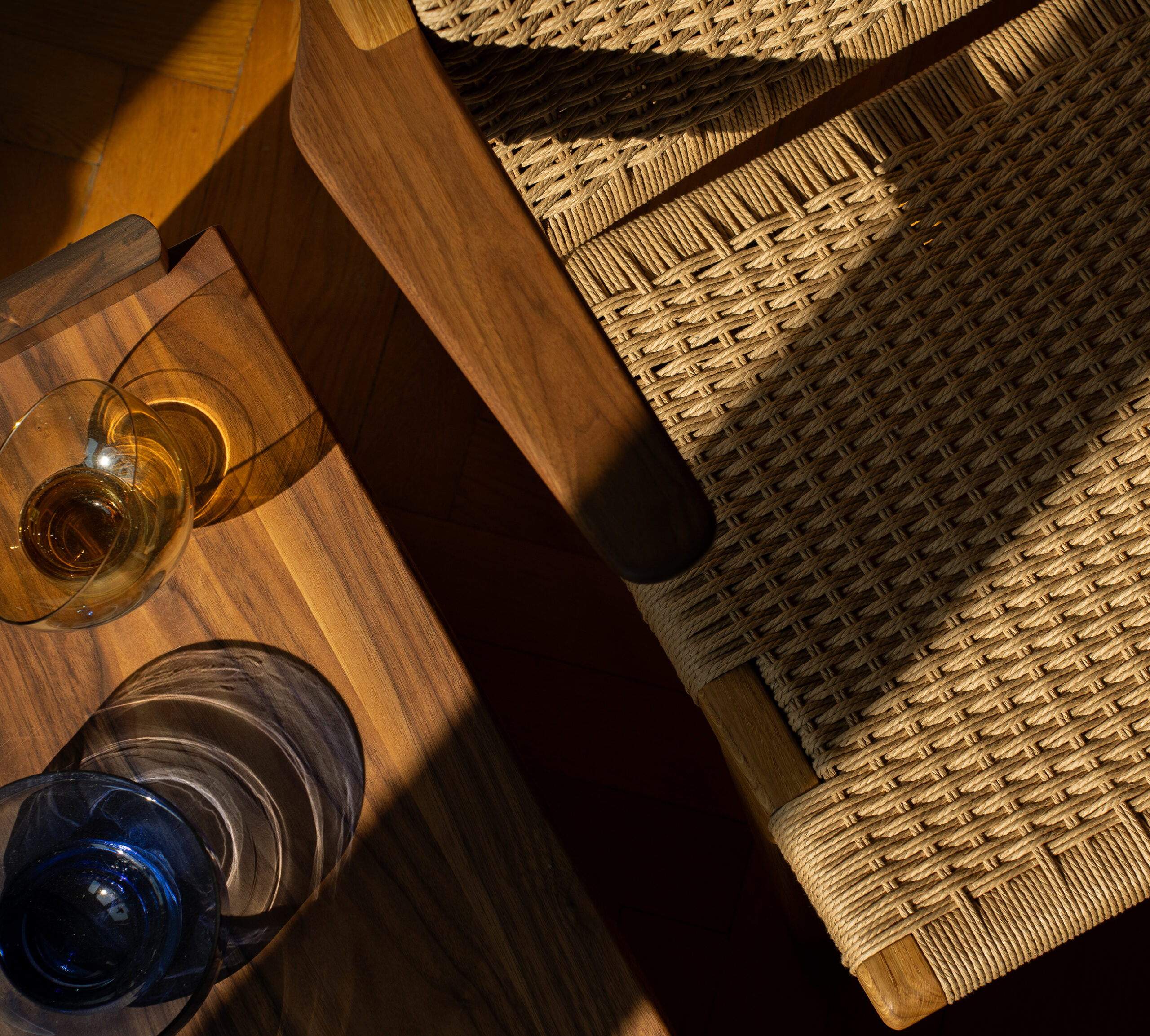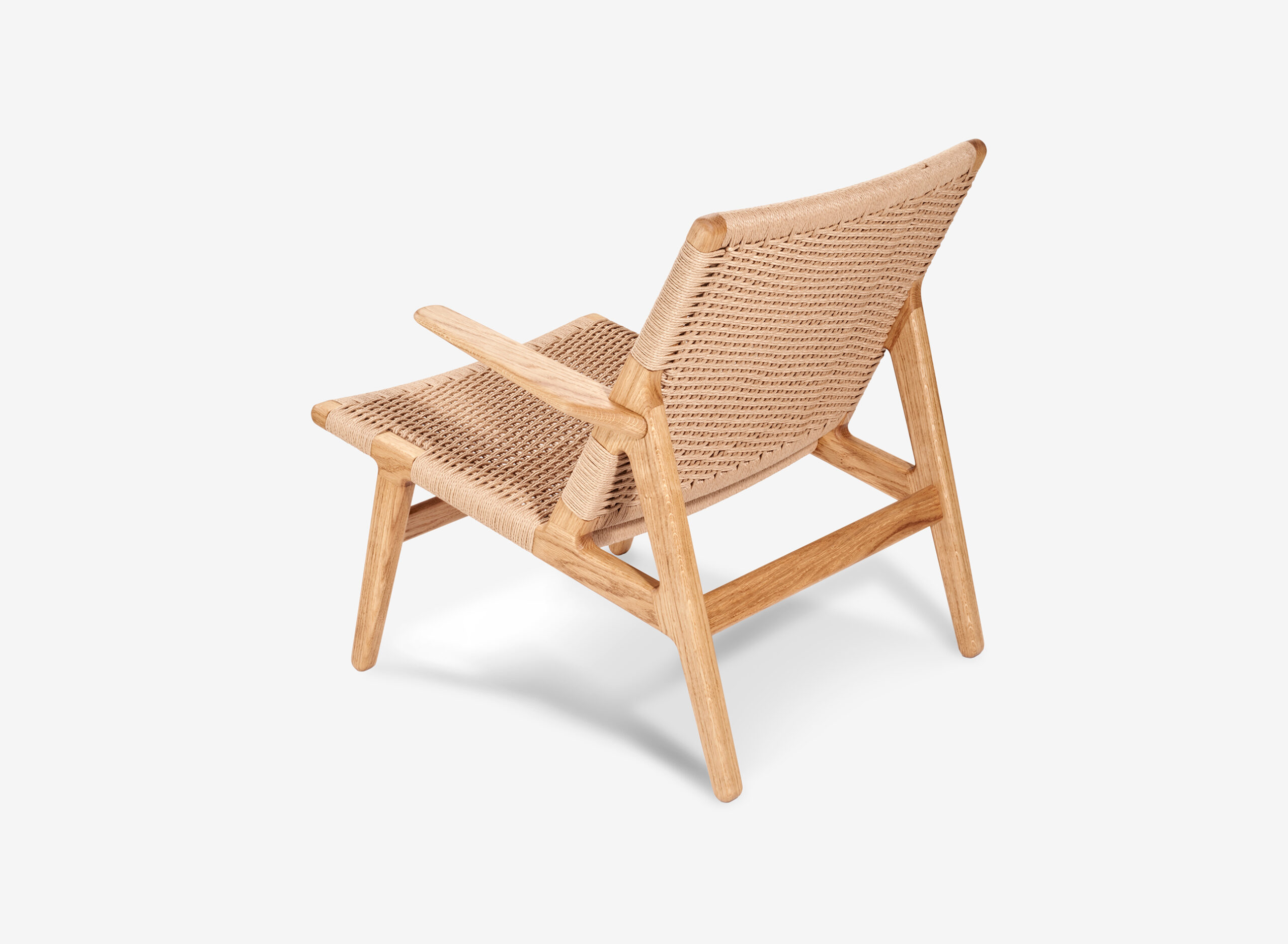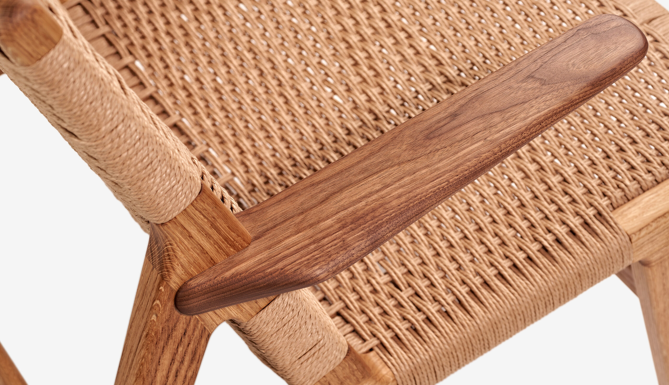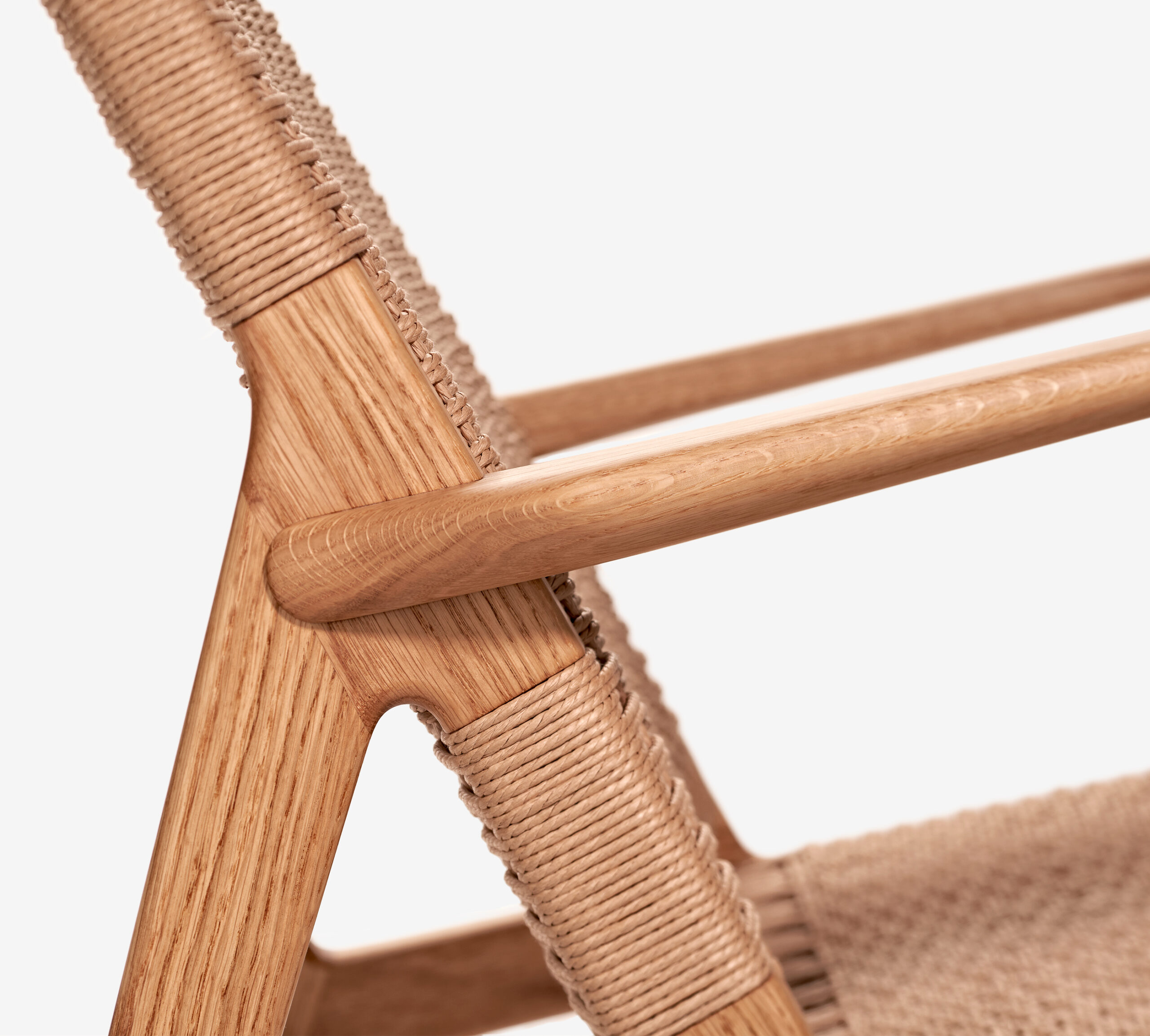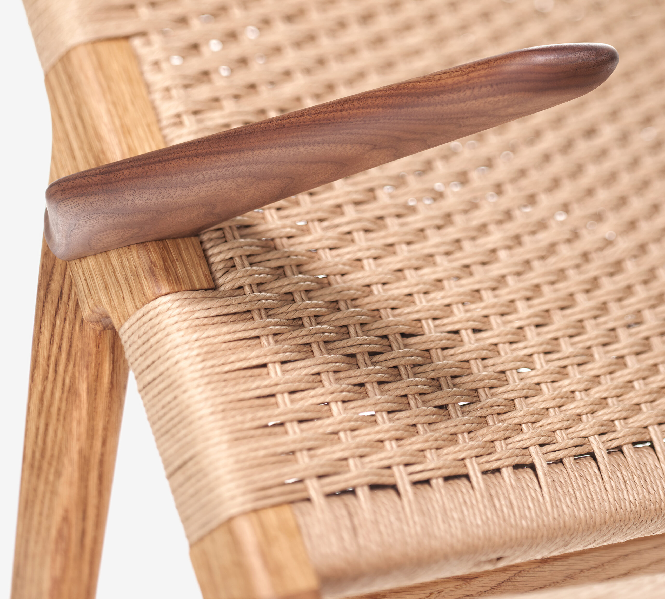 Siedzisko i oparcie mebla zostało ręcznie wyplecione z duńskiego sznurka, zgodnie z niezwykle misterną, tradycyjną techniką wywodzącą się ze skandynawskiego rzemiosła. Każdy fotel powstaje z blisko pięciuset metrów naturalnego materiału, a proces jego zaplatania zajmuje aż osiemnaście godzin.